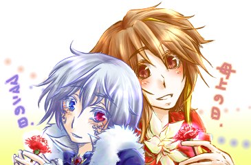 手に持ってるのはカーネーションだよ!バラとか丸めたティッシュとかじゃないぞ!